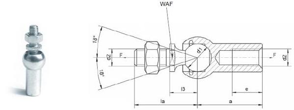Article | d1 h9 | d2 | a | la | l3 | e min | WAF | Extraction force F(N) | Poids (kg/1000 pièce) |