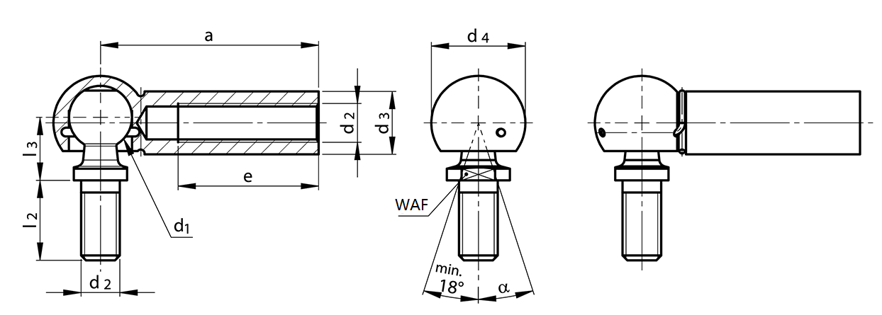Article | d1 h9 | d2 | a ±0,3 | d3 ±0.5 | d4 ±0,5 | e min | l2 ±0,3 | l3 ±0,3 | WAF | a | Poids (kg/1000 pièce) |